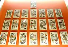 L'inscription sur la 2e carte d'atout varie suivant les langues : Industrie und Glück en allemand, Szerencse fel (« Bonne chance ») en hongrois, etc. La version tchèque ne comporte pas d'inscription[6].