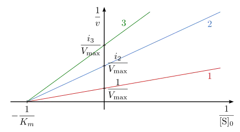Ce type d'inhibition réduit la vitesse maximum Vmax de la réaction chimique catalysée sans modifier la constante de Michaelis Km de l'enzyme.