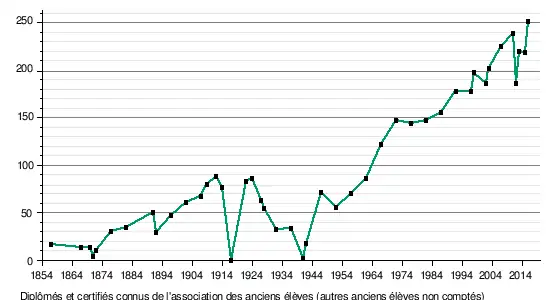 Après l'amalgame en 1926 des classes d'enseignement primaire supérieur et celles de collège et lycée, dont l'effectif réduit est consécutif au désastre démographique de la Grande Guerre, l'établissement de la gratuité de l'enseignement secondaire en France par la loi du favorise la démocratisation de l'accès à l'enseignement supérieur[97]. L'année préparatoire est supprimée en 1935 et le rôle est transféré aux classes préparatoires des lycées[98]. La sélectivité de délivrance du diplôme d'ingénieur IDN passe alors de l'aval, par des examens de sortie conditionnant la délivrance ou non du diplôme à une petite partie seulement de chaque promotion qui a suivi le cursus de trois ans et est déclarée apte à exercer les métiers d'ingénieurs (l'autre partie de la promotion d'élèves n'obtenant qu'un simple certificat pour leurs trois ans d'études), à une sélectivité scolaire amont par concours d'entrée national préalable au cursus de trois ans de formation et la délivrance du diplôme à la quasi-totalité de chaque promotion.