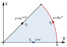Il est aussi possible d'intégrer sur le bord du secteur circulaire de sommets puis de faire tendre vers l'infini.