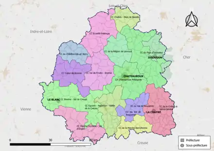 Au , le département de l'Indre compte 15 établissements publics de coopération intercommunale[1] à fiscalité propre dont le siège est dans le département (1 communauté d'agglomération et 14 communautés de communes), dont un qui est interdépartemental.