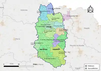 | CC du Sammiellois | 245500327 | 19 | 8 503 (2019[7]) | 247,60 | 34 | Saint-Mihiel | Régis Mesot | ||