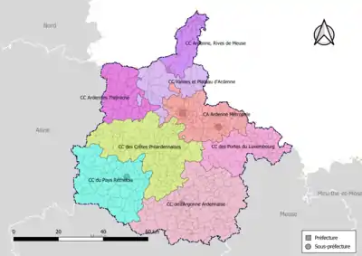 Au , le département des Ardennes compte 8 intercommunalités à fiscalité propre dont le siège est dans le département (1 communauté d'agglomération et 7 communautés de communes).