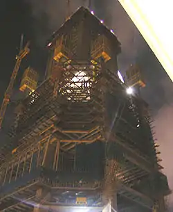 Le projet a été modifié en 2001 : la tour devait se terminer en pyramide, elle se termine finalement en parallélépipède.