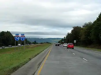 | .jpg.webp)  L'Interstate 77 direction sud, quelques miles au Sud de la frontière avec la Virginie, près de l'échangeur avec l'Interstate 74. | ||||||||