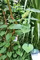 Les pétioles mesurent de 4 à 9 cm de long. Les feuilles inférieures sont triangulaires à base subtronquée, acuminées, et mesurent de 6 à 8 cm de long, tandis que les feuilles supérieures sont plutôt ovoïdes (ovées ou ovées triangulaires), avec une base cordée et un apex atténué à subacuminé et une marge entière, pour 5 à 7 cm de long[1].