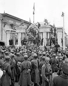 Soldats iraniens entourant le bâtiment de la Majles à Téhéran le .