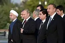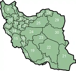 L’Iran (en persan : ايران, Irân), en forme longue la république islamique d'Iran (en persan : جمهوری اسلامی ايراﻥ, Jomhuriye Eslâmiye Irân ou JEI), est un pays d'Asie de l'Ouest, historiquement appelé la Perse[6]. Bordé au nord par la mer Caspienne, au sud-est par le golfe d'Oman et au sud par le golfe Persique, l'Iran partage des frontières avec le Turkménistan au nord-est, l'Afghanistan à l'est, le Pakistan au sud-est, l'Irak à l'ouest, la Turquie, l'Arménie et l'Azerbaïdjan au nord-ouest. Le pays a une superficie de 1 648 195 km2.