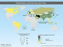 L'Iran compte 82 801 633 habitants[1]. La langue officielle est le persan et des minorités parlant azéri, kurde, lori, guilaki, soureth, baloutchi, mazandarani, kachkaï et arabe[1] peuplent certaines des 31 provinces. La capitale est Téhéran. Le calendrier officiel est le calendrier persan. L'Iran est la 28e puissance économique mondiale selon le produit intérieur brut (PIB) nominal et la dix-huitième selon le PIB à parité de pouvoir d'achat (2015). Le PIB par habitant s’élève à 11 200 $US (2011)[1]. Membre de l'Organisation des pays exportateurs de pétrole (OPEP), c'est un important producteur de pétrole à l'échelle mondiale. Il dispose de la plus grande réserve de gaz naturel. La monnaie est le rial.