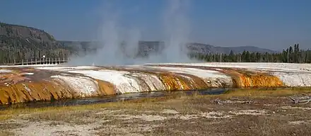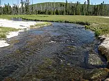 Vue de l'Iron Spring Creek traversant l'Upper Geyser Basin. | |