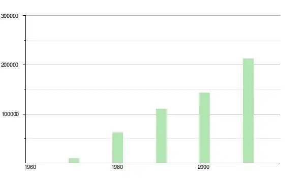 | 1980 | 62 127 | ▲ +516,28 % | |