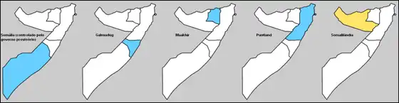 - le Puntland ou Pount, dont les chefs se sont déclarés autonomes en 1998, et réalisent des actes de piraterie autour de la Corne de l'Afrique;