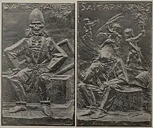 En 1904, Roukhomovsky revient avec humour sur l'affaire qui l'a rendu célèbre en réalisant une plaquette de bronze, qui est vendue au profit de l'Union française pour le sauvetage de l'enfance. D'un côté, portant la date « 1896 », on y voit le squelette ricanant de Saïtapharnès, coiffé de la tiare et émergeant triomphalement de son sarcophage. Au revers, portant la date « 1903 », le même personnage est en pleurs après avoir été découronné par trois putti symbolisant la publicité, la critique et la vérité[17].