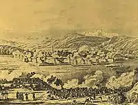 Le général ottoman Ali-Pacha à la tête de dix-huit mille hommes se présenta devant les murs de ville afin de réduire les sept mille hommes du prince Andronikachvili. Mais le , les Turcs subirent une lourde défaite. Le major-général Andronikachvili et ses hommes se saisirent de cinq drapeaux, dix-huit icônes, onze armes à feu et toutes les armes appartenant aux troupes turques, ces derniers laissèrent quatre mille morts sur le champ de bataille. Cette victoire contre les troupes du général Ali-Pacha lui valut l'Ordre de Saint-Georges (3e classe)[1].