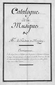 - François-Joseph Gossec : chef du Concert des Amateurs, il a dirigé Masson de Meslay, qui souscrit à l’édition de sa Messe des morts en 1780[22]. La collection de Masson de Meslay possédait plusieurs de ses œuvres manuscrites, certaines non connues.