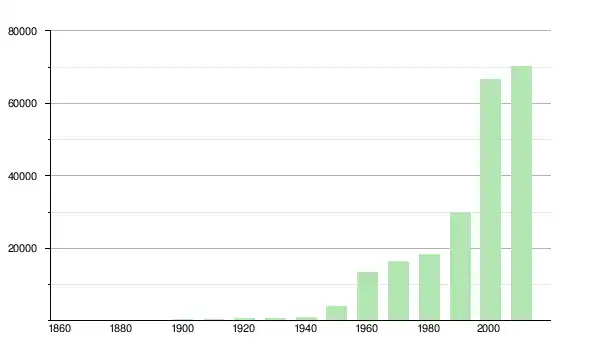 | 1960 | 13 491 | ▲ +240,68 % | |