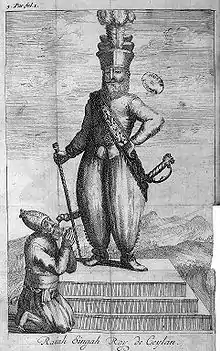 Le , l'escadre arrive en vue de Colombo dans l'île de Ceylan, ancienne possession portugaise conquise par les Hollandais en 1656 grâce à une alliance avec le royaume de Kandy et réputée pour sa production de cannelle[20]. Les Français prennent contact avec les Hollandais mais sans ouvrir les hostilités, affectant de ne vouloir que prendre de l'eau douce[21].