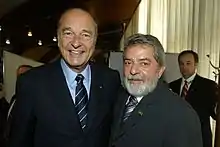 Jacques Chirac (/ʒak ʃiʁak/[alpha 2] ), né le dans le 5e arrondissement de Paris et mort le dans le 6e arrondissement de la même ville, est un haut fonctionnaire et homme d'État français. Il est Premier ministre de 1974 à 1976, puis de 1986 à 1988, et président de la République de 1995 à 2007.
