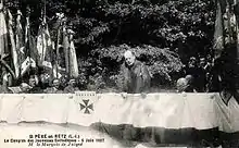 - Le marquis de Juigné épousa[17], le à Paris VIIIe, Marie Madeleine Emma Eudoxie Schneider (Le Creusot (Saône-et-Loire), - le - Château de Juigné-sur-Sarthe (Sarthe)), militante féministe chrétienne[18] quatrième fille d'Henri Schneider (1840-1898), dont il eut :.jpg.webp) La marquise Leclercq de Juigné, anonyme, 1927, photographie noir et blanc, Paris, Archives de l'Action catholique des femmes. La marquise Leclercq de Juigné, anonyme, 1927, photographie noir et blanc, Paris, Archives de l'Action catholique des femmes.- Colette Marie Alix Eugénie (Paris, - Château de Juigné-sur-Sarthe, ), chevalier de la Légion d'honneur, mariée, le à Juigné-sur-Sarthe, avec Armand Marie Augustin Joseph Odet de Durfort de Civrac (1902-1996), duc de Lorges, dont postérité ;