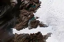 Vue aérienne du front du Jakobshavn Isbræ en juillet 1999. | ||