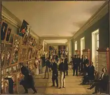 Obraz Wincentego Kasprzyckiego Wystawa sztuk pięknych w Warszawie w 1828 roku, po lewej stronie na górze uwidoczniony obraz Lipskiego „Chrystus i Samarytanka”