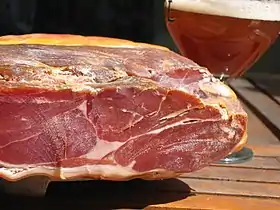 En France, l'appellation d'origine jambon sec de Corse ou jambon sec de Corse - prisuttu, porc produit et transformé en France, se voit préservée via le label appellation d'origine contrôlée depuis le [7]. Le jambon noir de Bigorre et le jambon du Kintoa du béarn et pays-basque bénéficient également d'une AOP[5].