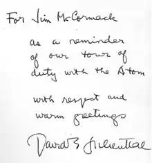 Pour son travail en tant que directeur des applications militaires à l'AEC, McCormack reçoit l’Army Distinguished Service Medal[3].