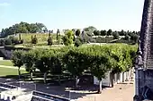 Jardin du château d'Amboise avec arbres, buis et vignes.