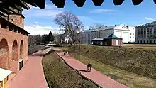 Plus tard, en raison de la destruction des systèmes de drainage, les processus de glissement de terrain sont devenus plus fréquents dans cette partie du Kremlin et la section du piémont du mur de la forteresse a commencé à s'effondrer. En particulier, le 18 août 1844, un glissement de terrain s'est produit, à cause duquel des fissures ont traversé l'église du Saint-Esprit, de la fondation même aux voûtes. Un an plus tard, l'empereur ordonne de démolir l'église. Les travaux pour éliminer les conséquences des activités de construction de Pelzel s'étirent pendant des décennies: ils sont menés dans les années 1850 par l'architecte Lev Fostikov et dans les années 1860 par l'architecte D. Nebolski. Une utilisation originale est trouvée pour les nappes phréatiques : un bassin est aménagé sur la terrasse un peu plus haut que la partie détruite du mur, où même des carassins sont élevés pour la table de l'évêque; en contrebas, le long de l'autre ligne des murs, les habitants du quartier adjacent utilisent l'eau de la source et en remplissent le bassin de l'église de la Source-Vivifiante. En 1880, d'importants travaux sont menés pour capter l'eau des sources dans le jardin en contrebas du palais du Gouverneur[7],[10][11].
