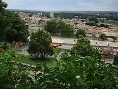 Jardin des Doms, au sommet du rocher des Doms et du pont d'Avignon, voisin du palais des papes d'Avignon, sur le Rhône. | |