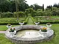 9. Au cœur du château, dans un espace scandé de cyprès entourant des carrés de gazon et de buis ornés de vases royaux, le Jardin du Silence (créé en 1997), avec son vieux puits et son colombier, est à la fois gracieux et sévère.
