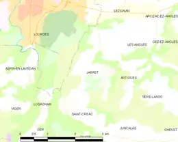 La commune de Jarret se trouve dans le département des Hautes-Pyrénées, en région Occitanie[I 1].