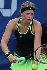 | _(42077295315).jpg.webp)  Jeļena Ostapenko à Roland-Garros 2018 | ||||