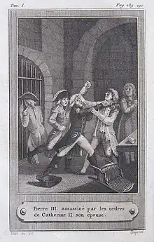Frontispice à L'Histoire de Pierre III, vol. I, gravure, 1799.