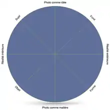 En 1977, puis en 1990, il propose une classification des photographies prises ou faites par des photographes en quatre catégories qu'il répartit autour d'un cercle.