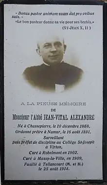 Jean-Vital Alexandre, né le à Chassepierre et mort à Tellancourt en Meurthe-et-Moselle, le , est un prêtre catholique belge, curé de Mussy-la-Ville, qui est exécuté par les Allemands lors de la Première Guerre mondiale.
