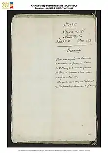 - Archives départementales de Côte-d'Or, Lettre de naturalité de Valburg de Vander Aa