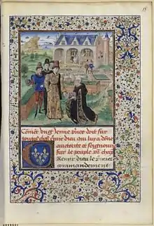 - Instruction du roy saint Louis à son fils, suivi de L'instruction d'un jeune prince puis Les enseignements paternels, copie du manuscrit de Charles le Téméraire, destinée à Louis de Gruuthuse, 3 miniatures, vers 1468-1470, Bibliothèque nationale de France, Fr.1216