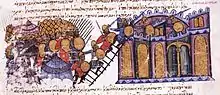 Kourkouas assaille Édesse chaque année à partir de 942 et dévaste ses environs, comme il l'a fait avec Mélitène. Finalement, l'émir accepte de signer la paix, jurant de ne pas lever les armes contre Byzance et d'échanger le Mandylion avec 200 prisonniers[44],[47]. Le Mandylion est transporté à Constantinople où il arrive le pour la fête de la Dormition de Théotokos. Une entrée triomphale est organisée pour la relique qui est ensuite déposée dans l'église Notre-Dame du Phare, une chapelle palatine du Grand Palais[44],[48]. Quant à Kourkouas, il termine sa campagne par le sac de Bithra (aujourd'hui Birecik) et de Germanicée (aujourd'hui Kahramanmaraş)[49].