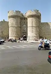 La seconde expédition égyptienne a lieu en 1444[5]. Elle est connue, côté arabe, par la chronique d'Abou al-Mahâsin ibn Taghrî Birdî[note 4] (1530-1604). La flotte des Mamelouks, forte de 75 vaisseaux, débarque cette fois une armée de 18 000 hommes, qui met le siège devant Rhodes le . La version des faits, côté chrétien est donnée par une chronique, due à un Catalan, Francisc Ferrer, poète à ses heures. Les deux sources s'accordent pour constater que les différents assauts des Égyptiens ont été repoussés. Une sortie victorieuse, et presque désespérée, ordonnée par Jean de Lastic, aurait même permis de jeter à la mer les pièces d'artillerie égyptiennes placées devant la principale porte de la cité, mal défendue depuis le môle séparant le port de commerce et le port militaire. Le , un nouvel assaut se solde par un échec. Le siège est alors levé. 300 Mamelouks ont été tués et 500 autres blessés, sans compter les pertes des combattants non mamelouks et des auxiliaires.