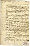 Elle rédige un testament[15] à partir de et le termine le . Jeanne Mance meurt le . Dans son testament, elle lègue son cœur aux Montréalais et elle demande aux Hospitalières de prendre soin de son corps. Sa dépouille est placée dans la crypte de la chapelle de l'actuel Hôtel-Dieu de Montréal, où elle repose toujours.