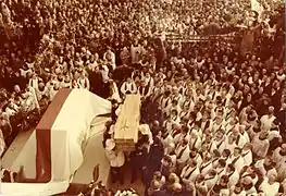 Le , plus de 500 000 personnes[réf. nécessaire] rendent un dernier hommage au père Jerzy Popiełuszko, dont les obsèques célébrées en l'église Saint-Stanislas-Kostka de Varsovie insufflent une seconde vie au syndicat Solidarność alors bâillonné.