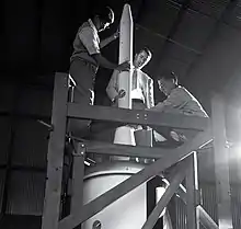 | Corporal | 1947-1955 | 5 t | 13,8 m | 76 cm | Moteur à ergols liquides (89 kN) | 63 s | Tête nucléaire (20 kt) Portée 130 km Guidage radio | 680 kg |