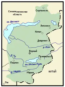 Lors de l'annexion de ce territoire au XIXe siècle par l'Empire russe, il fut dénommé en russe oblast de Semiretchie, Semiretchensk ou Semiretche qui signifie également « Sept-Rivières ».
