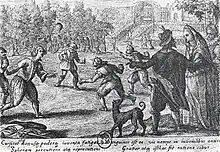 Jeu de balle en plein air au XVIe siècle en France.
