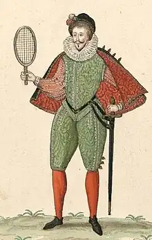 Le , au lendemain de son entrée royale dans Paris, Henri IV dispute une partie de jeu de paume. Cette partie disputée, au jeu de paume de La Sphère rue Vieille-du-Temple, fut très appréciée par le peuple parisien et fit beaucoup pour la popularité du nouveau roi dans la capitale. Sa maîtresse Gabrielle d'Estrées vient souvent le voir jouer et les courtisans peuvent admirer leur souverain suant "tout en chemise, déchirée sur le dos, avec de vieilles chausses grises à jambes de chien"[3].