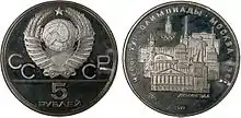 L'avers de la médaille olympique représente la déesse Niké tenant une couronne de laurier devant le Colisée surmonté de l'inscription en lettres cyrilliques "Igry XXII Olympiady Moskva 1980" (Jeux de la XXIIe Olympiade, Moscou 1980). Sur le revers, est représentée la vasque olympique allumée devant une piste d’athlétisme. En haut à droite on peut voir l'emblème des Jeux de Moscou. Le nom du sport est gravé sur la tranche.