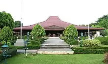 Le pendopo est un grand pavillon ouvert et rectangulaire réservé aux demeures de nobles. Il est situé en avant du complexe et sert à recevoir les invités et pour les cérémonies[3]. Il est relié à l'habitation principale (omah) par le peringgitan.