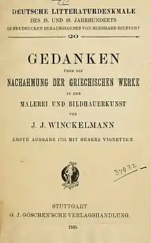 - Réflexions sur l'imitation des œuvres grecques dans la sculpture et la peinture (Gedanken über die Nachahmung der griechischen Werke in der Malerei und Bildhauerkunst - 1755)