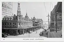 En 1917, Johannesburg devint le siège de la société Anglo American fondée par Ernest Oppenheimer, qui devint finalement l'une des plus grandes sociétés du monde, dominant à la fois les mines d'or et de diamant en Afrique du Sud. D'importants investissements immobiliers ont eu lieu dans les années 1930 (immeubles Art déco), après l'abandon de l'étalon-or. À la fin des années 1940 et au début des années 1950, le quartier d'Hillbrow connu une forte croissance. En 1951, en application des nouvelles lois d'apartheid, le township de Soweto fut conçu pour recevoir des résidents uniquement noirs. De nouvelles autoroutes ont favorisé le développement des banlieues au nord de la ville. À la fin des années 1960 et au début des années 1970, des gratte-ciels (notamment le Carlton Centre et le Southern Life Centre) occupaient l’horizon du quartier central des affaires.
